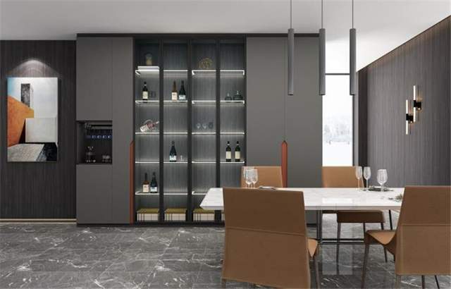 餐廳空間色調(diào)上延續(xù)了高級灰色調(diào)。摒棄所有不必要的繁復枝節(jié),保留最本質(zhì)的收納功能,讓人在其中倍感舒適和清爽。